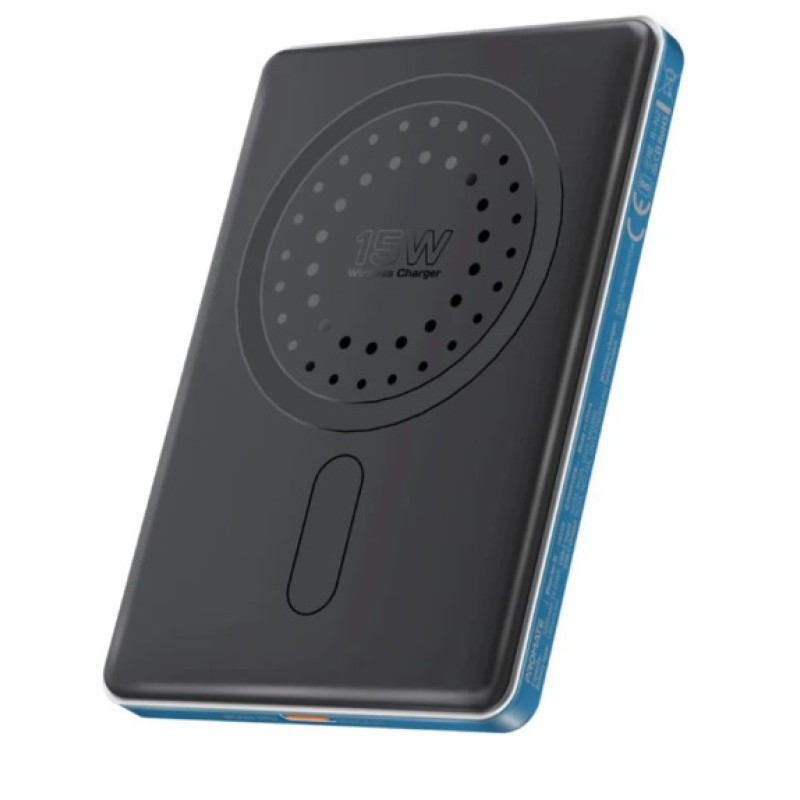 Promate 5000mAh, Ultra-Slim Aluminum Crafted MagSafe Compatible Wireless Charging Powerbank, BLADE-5 - Blue