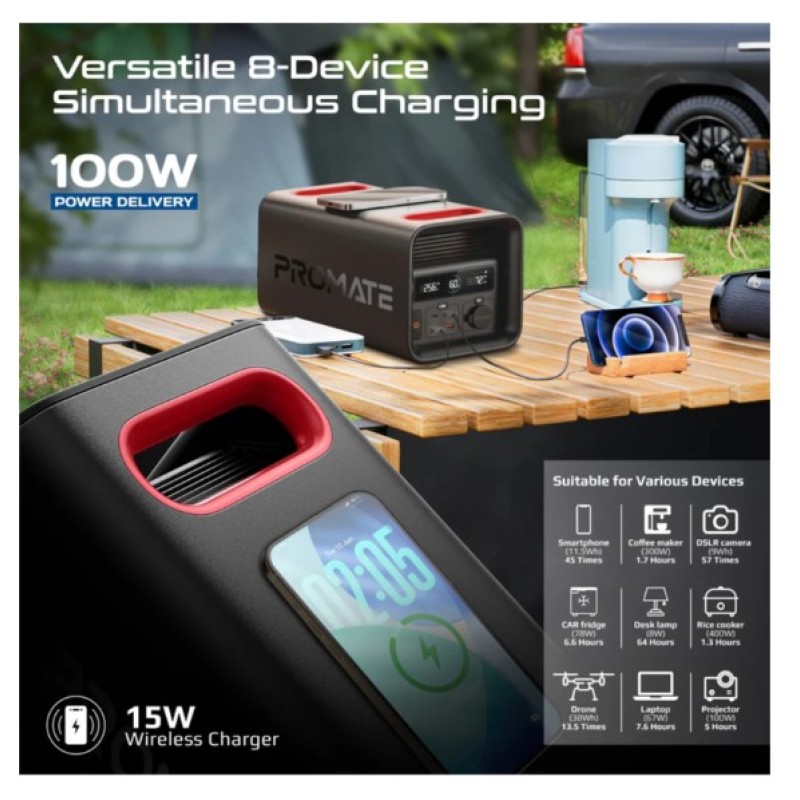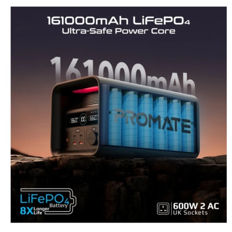 Promate 600W/161000mAh, LiFePO4 High-Capacity Portable Power Station - PowerTank-600
