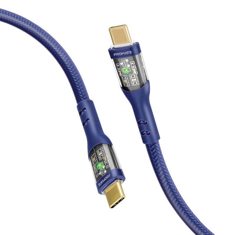 Promate 60W, 1.2meter Power Delivery Ultra-Fast USB-C Cable with Transparent Shells, Navy - TRANSLINE-CC