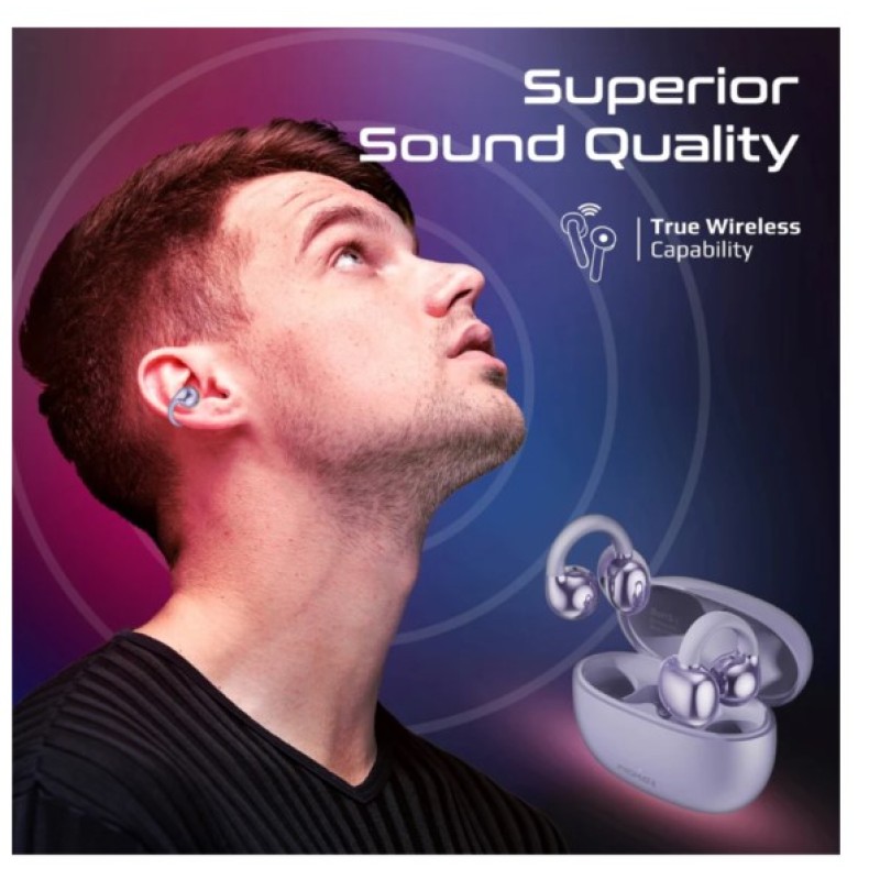 Promate AudioFit™ Open Ear Clip on TWS Earbuds with IntelliTouch, Purple