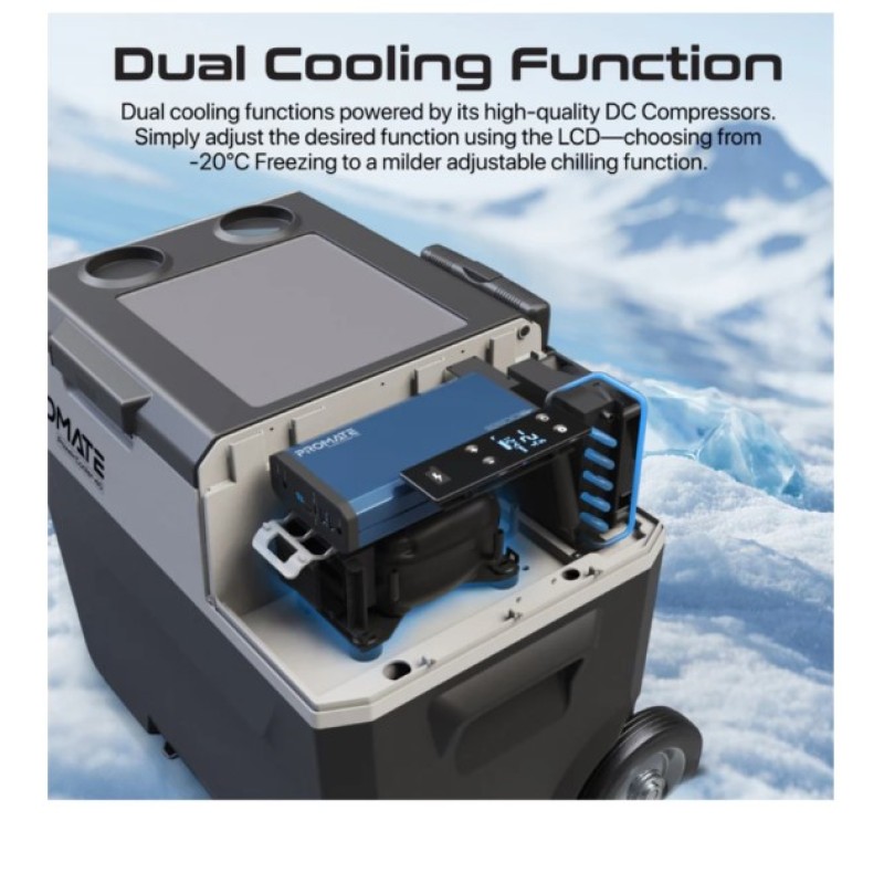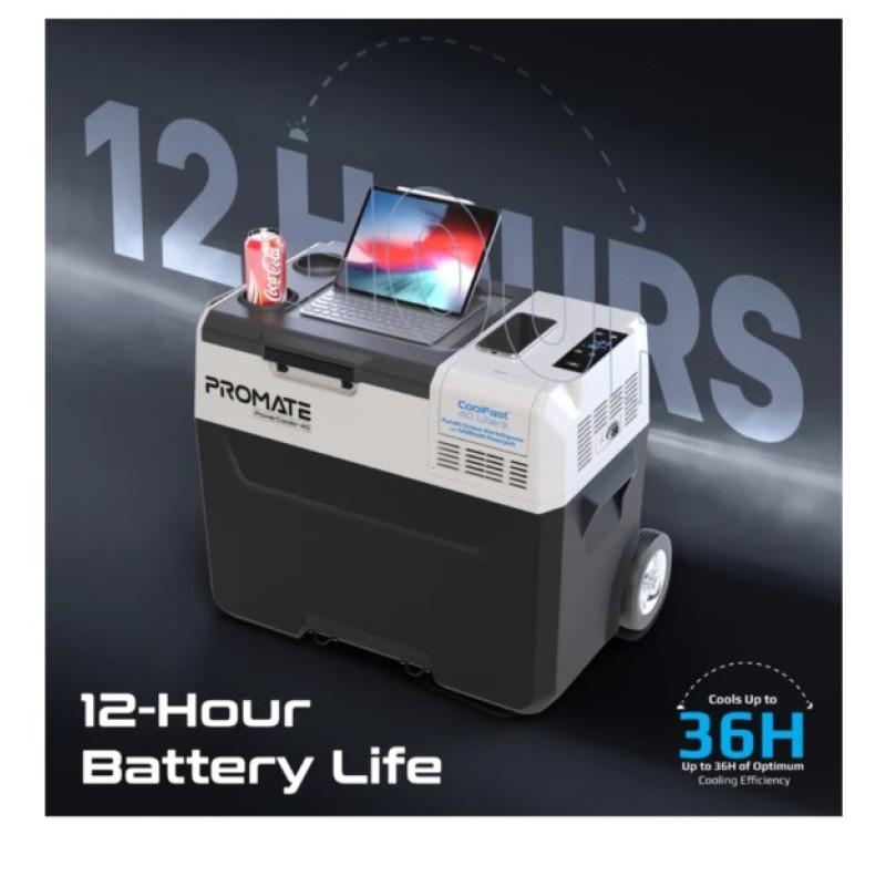 PowerCooler-40 features the latest technology designed with more versatility and a battery pack that also functions as a removable 52000mAh power bank so you can charge your devices on the go.