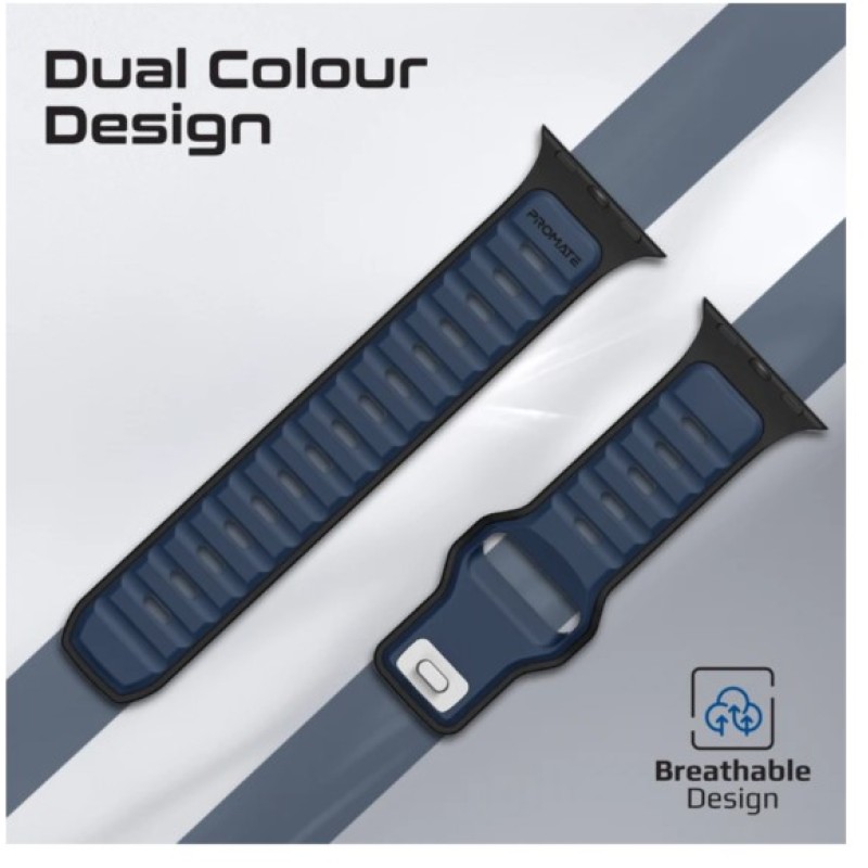 Promate Durable Two-Toned Silicone Sporty Apple Watch Band, Blue