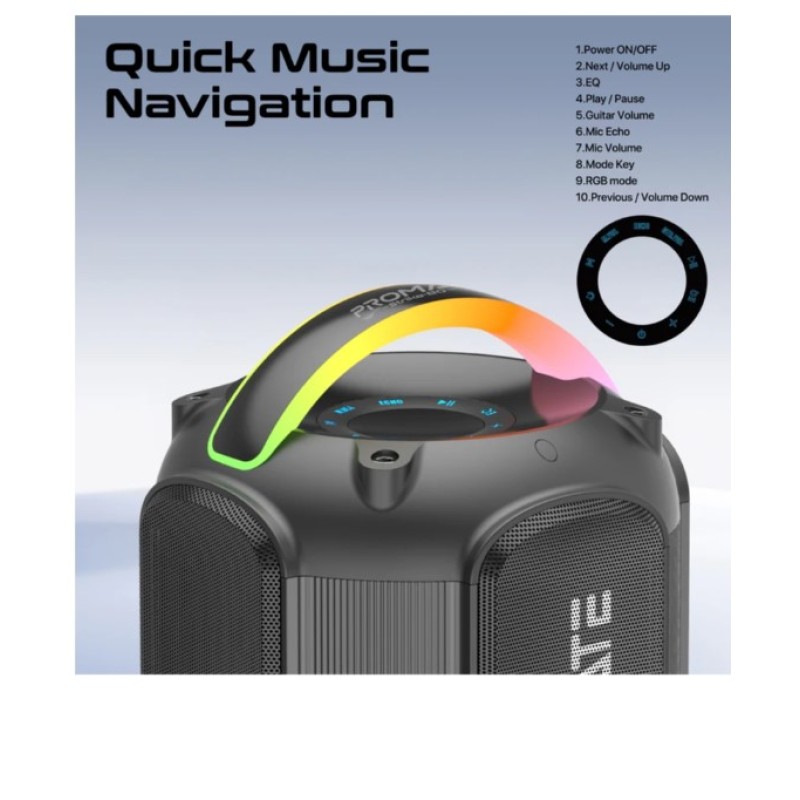 Promate Dynamic RGB Bluetooth v5.3 True Wireless 80W Speaker - Strike-80