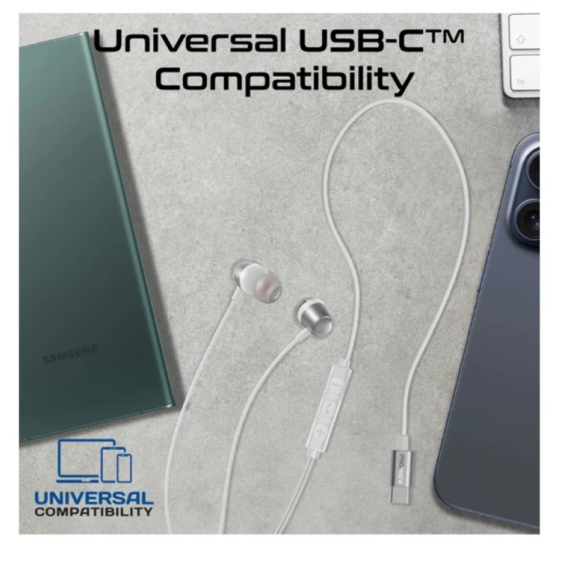 Promate Ergonomic In-Ear USB-C Wired ENC Stereo Earphone, White