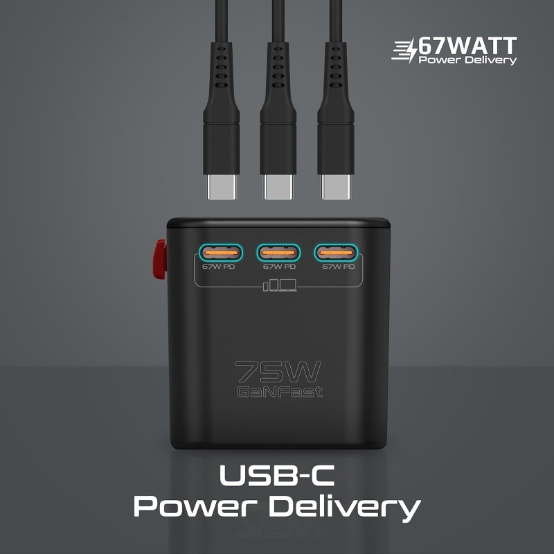 · GaN Technology: The TripMate-GaN75 charger features the next-generation GaNFast (gallium nitride) technology and GaN Chipset.