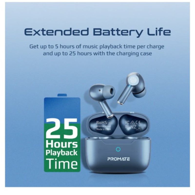 Promate High-Definition ANC TWS Earphones with intellitouch, Blue