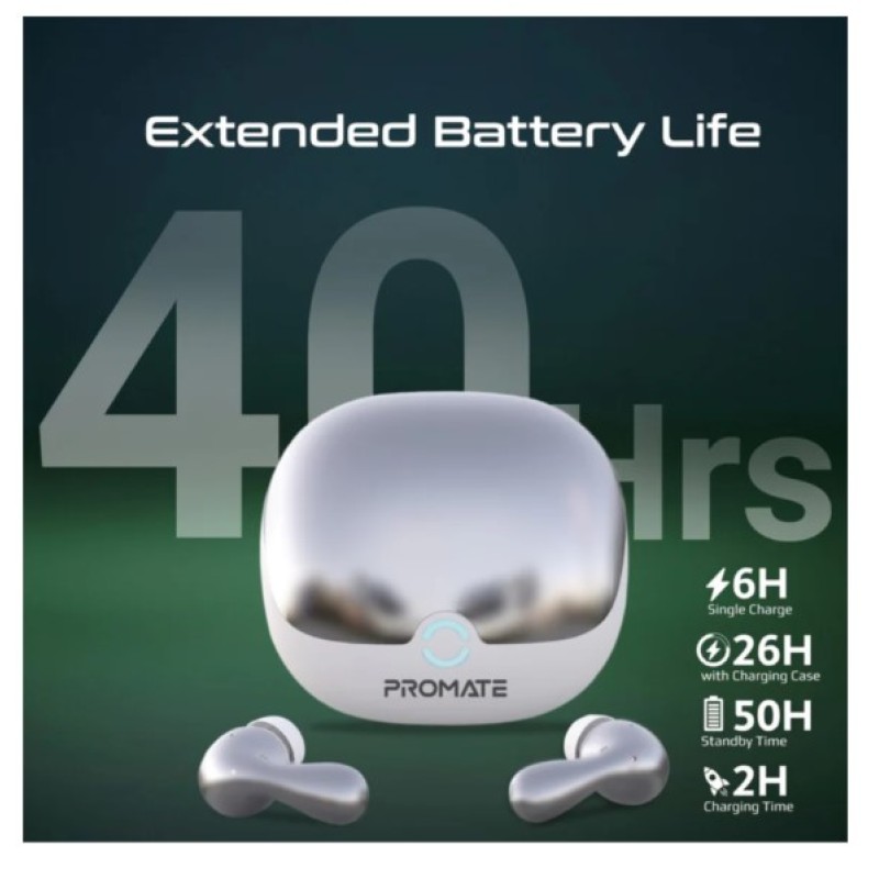 ·       Take control effortlessly with Promate’s IntelliTouch technology while staying connected to your surroundings with Transparency Mode, granting you ambient sound awareness like never before. With an impressive 40-hour playback time and superior audio clarity, Baton ensures uninterrupted enjoyment and communication. Its ergonomic, comfort-fit design and IPX4 water resistance make it the perfect companion for any adventure, while its true wireless stereo capability and extended battery life promise an audio experience that's unmatched.