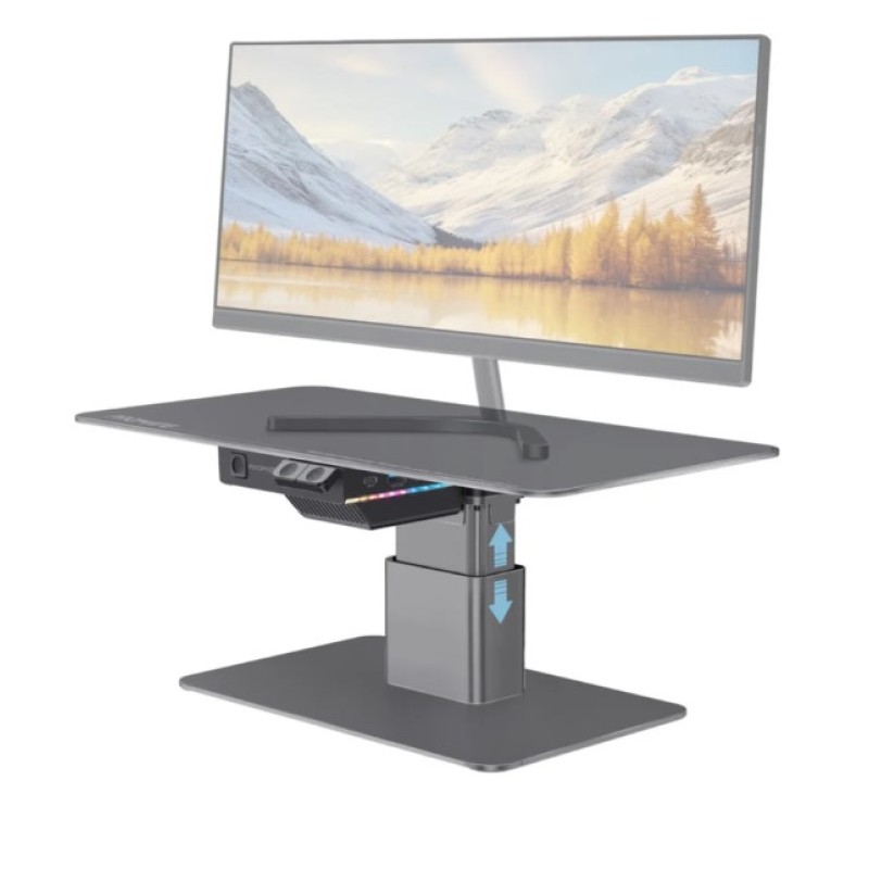 • Introducing Raizer, the ultimate solution for elevated productivity and comfort. Our motorized ergonomic monitor and laptop stand redefine the way you work and play. Effortlessly adjust your workspace height with the touch of a button, ensuring optimal ergonomic positioning for both monitors and laptops. With its built-in USB hub featuring USB-C Power Delivery and high-speed USB 3.0/2.0 ports, stay connected and powered up at all times.