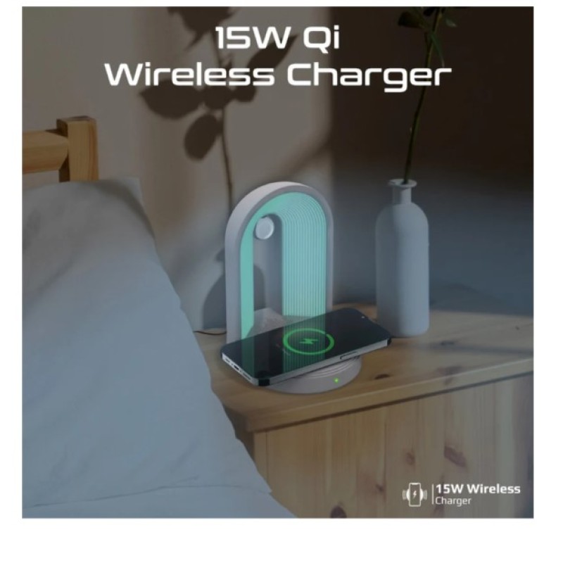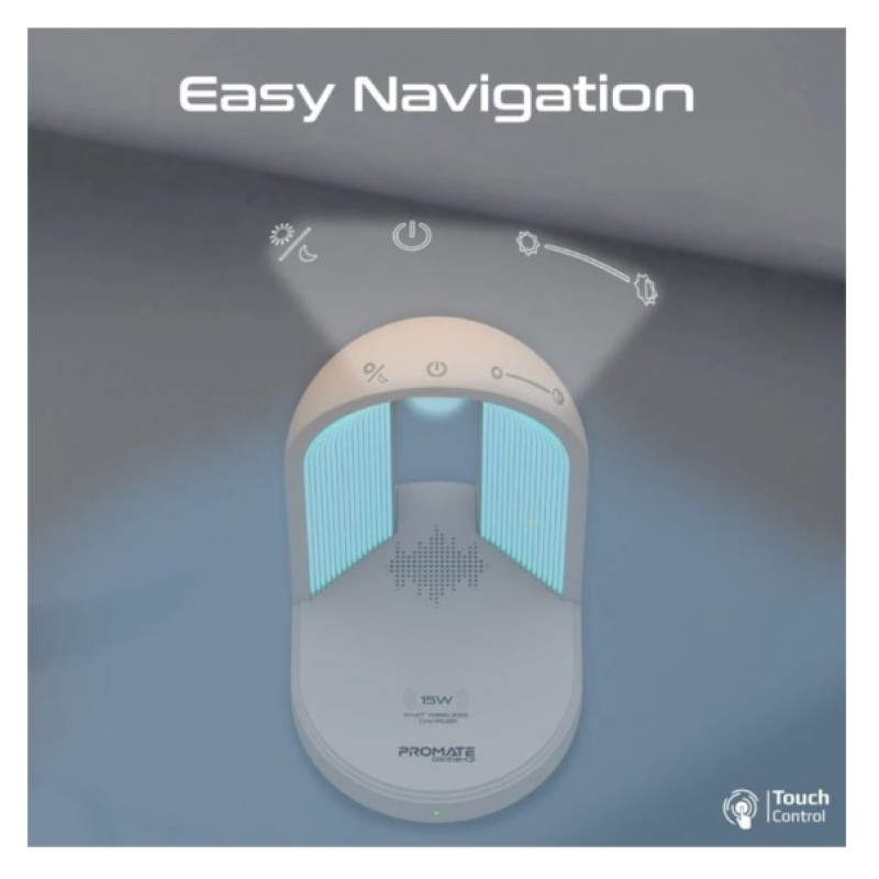 Promate Multi-Functional LED Lamp Bluetooth Speaker with 15W Wireless Charger - Globe-Qi