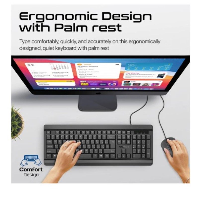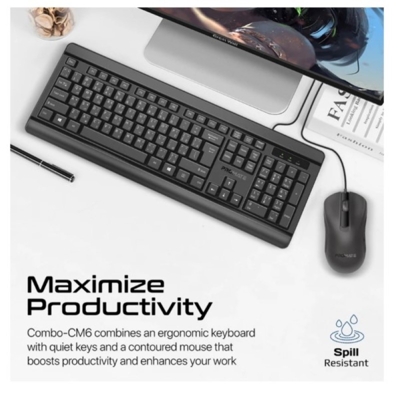 Promate Quiet Keys Wired Keyboard and 1200 DPI Mouse - COMBO-CM6