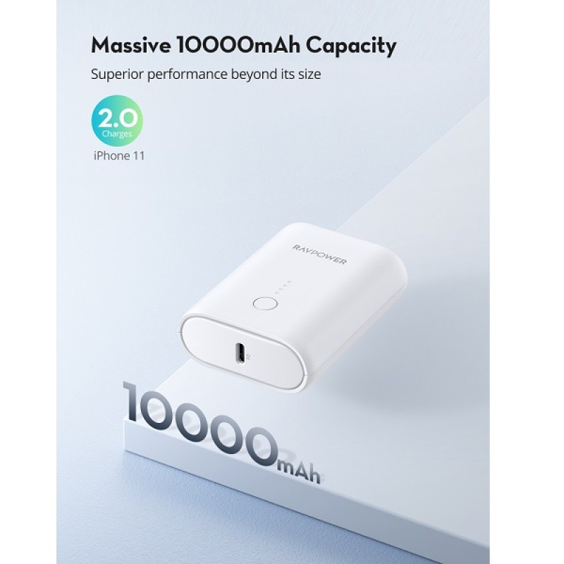 RAVPower 10000mAh PD 18W MFi Power Bank, White - RP-PB206WHI