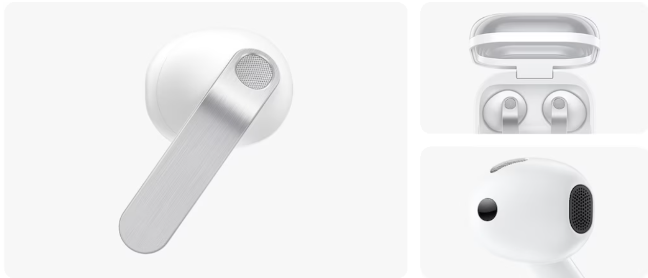 Galaxy Buds4 feature a premium design highlighted by real metal blades that give them a distinctive and modern appearance. The earbuds are shaped using computational modeling backed by global ear data to improve wearability and ensure a snug fit for extended listening sessions. Their lightweight structure and ergonomic contour allow them to stay comfortably in place whether you are indoors, commuting or working out. The compact charging case includes a translucent cover so you can easily check placement, and its portable form makes it simple to carry anywhere.