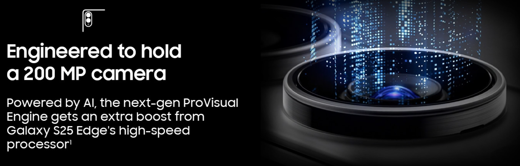 The Galaxy S25 Edge brings a massive leap in mobile photography with its 200 MP + 12 MP dual rear camera system. With the AI-powered ProVisual Engine, this camera captures intricate details, vivid colors, and exceptional clarity in any lighting condition. Whether you're shooting in daylight or low light, the result is always sharp, natural, and true to life.