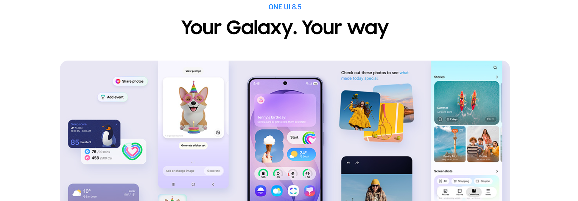 Running on One UI 8.5, the Galaxy S26 series adapts to user habits and preferences, providing a simplified interface with intelligent suggestions and contextual reminders. The software enhances productivity and ensures a smooth, personalized smartphone experience.