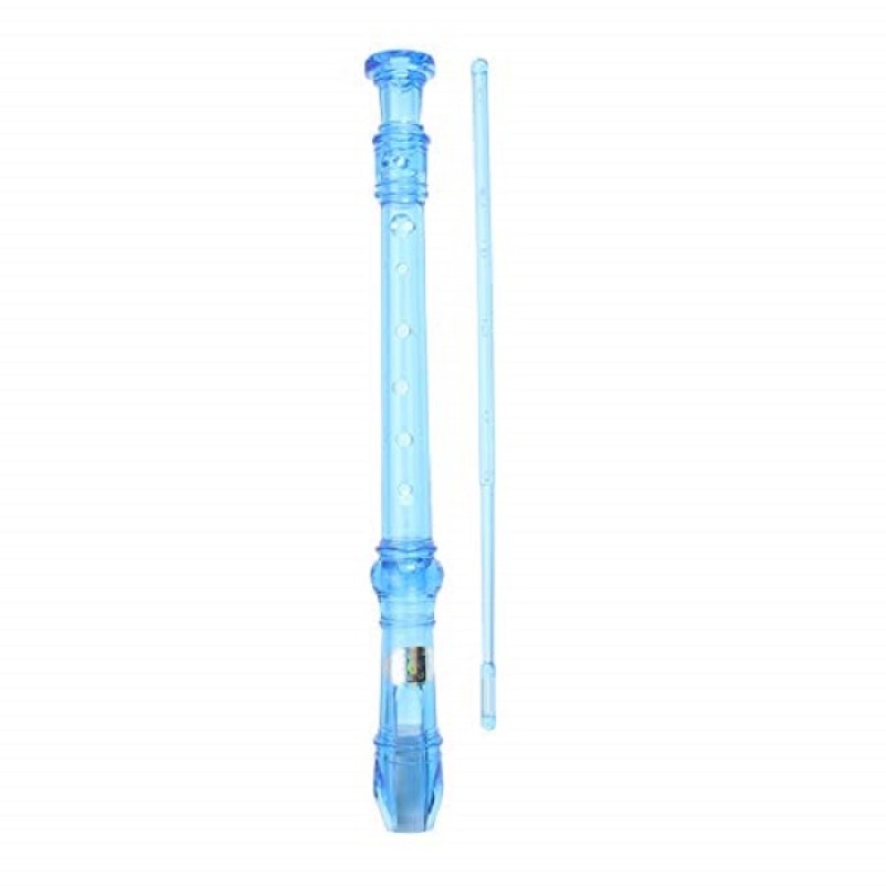 SWAN Soprano Recorder, 8-Hole Plastic Transparent Flute with Cleaning Rod For Beginners, Translucent Blue - SW-8KT-TBLUE