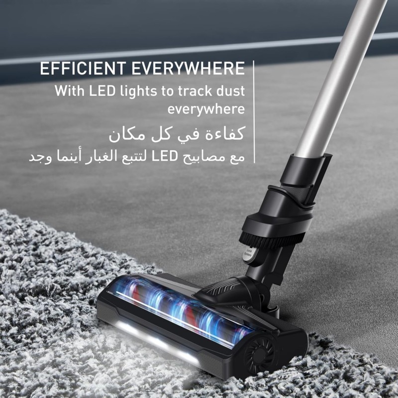 · EFFICIENT EVERYWHERE: A high-speed rotation suction brush with nylon bristles that delivers highly efficient cleaning on all types of floors, carpets and rugs—with LED lights to track dust everywhere