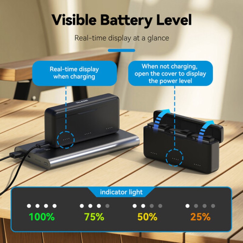 ·       The TELESIN charging case is equipped with intelligent protection features such as anti-overcharge, anti-overheat, and short circuit protection. This technology ensures the safety of your battery during the charging process.