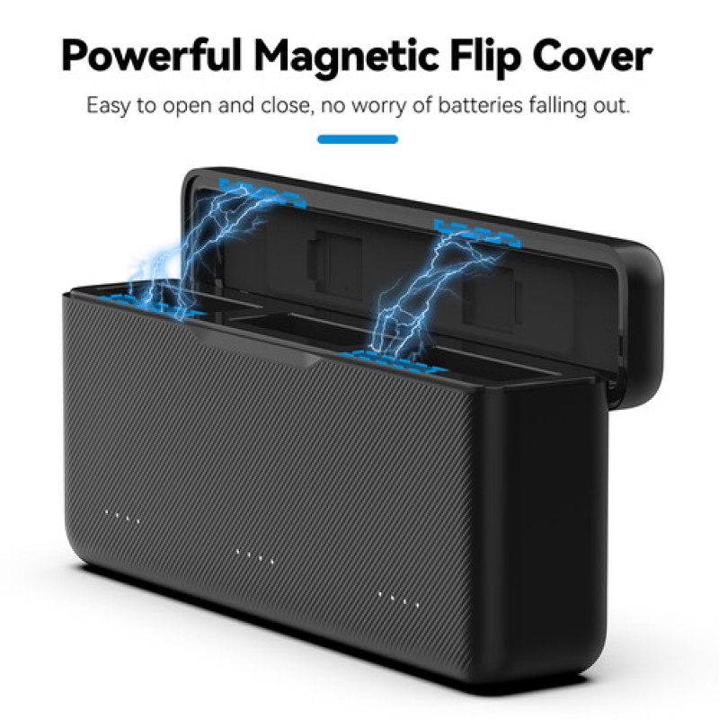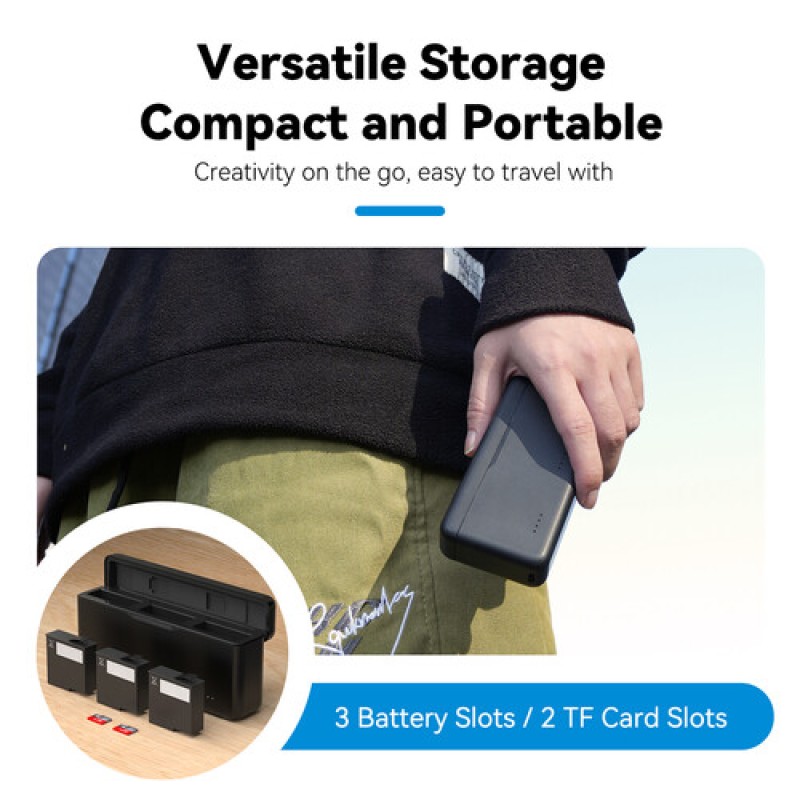 ·       TELESIN charging case is a smart solution to ensure the battery of the DJI Osmo Action 5 camera. You're always ready to go. With three fast charging slots, this charging case allows you to charge three batteries at once, saving time and providing maximum comfort. The portable and compact design makes it easy to carry anywhere, perfect for charging needs during travel or outdoor activities.