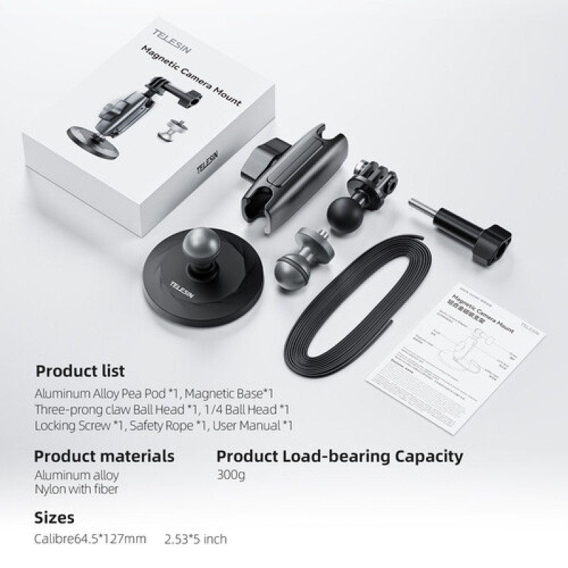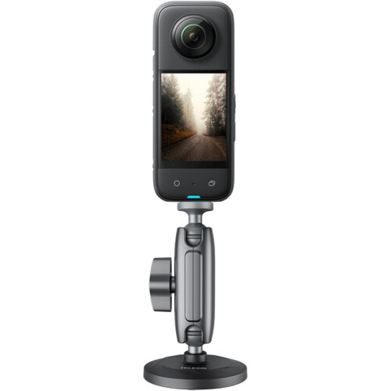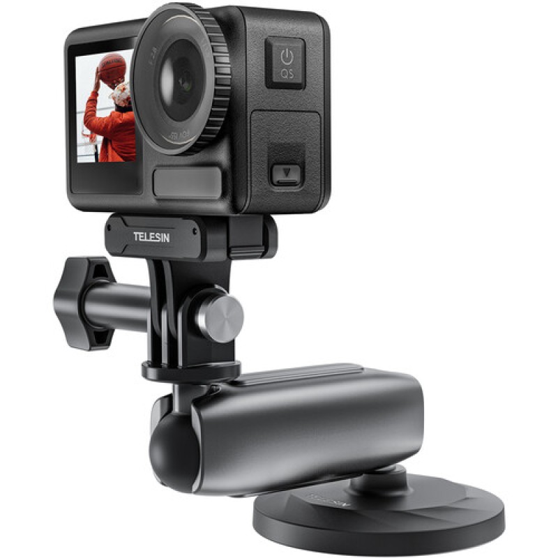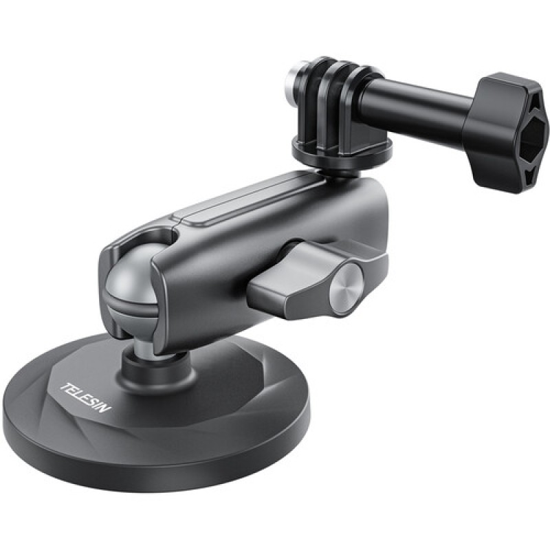 · Secure your action camera of choice to a magnetic surface to film exercise videos in the gym or dynamic driving shots using this TELESIN Magnetic Mounting Base with Articulating Arm. The base features six embedded magnets capable of supporting loads up to 10.6 oz. When attached to a vehicle, the base can withstand speeds up to 37.3 mph for video recordings on local rural roads. A ball head at the top of the base allows you to attach the included articulating arm, which features a clamping system to switch out ball heads as needed.