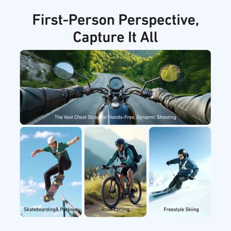 ·       Go hands-free and capture motion and action scenes from a chest-level perspective with your GoPro, DJI, Insta360, or other small action camera mounted on this dedicated Vest Chest Strap with Quick Release from TELESIN. Use this updated chest strap to steady your camera when skiing, boating, biking, surfing, cycling, or on a motorcycle.