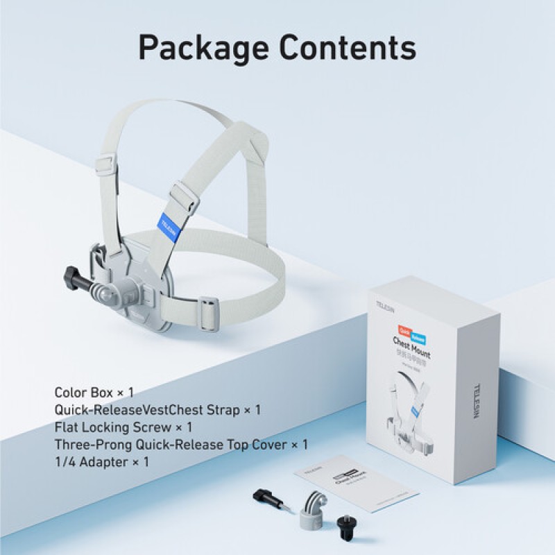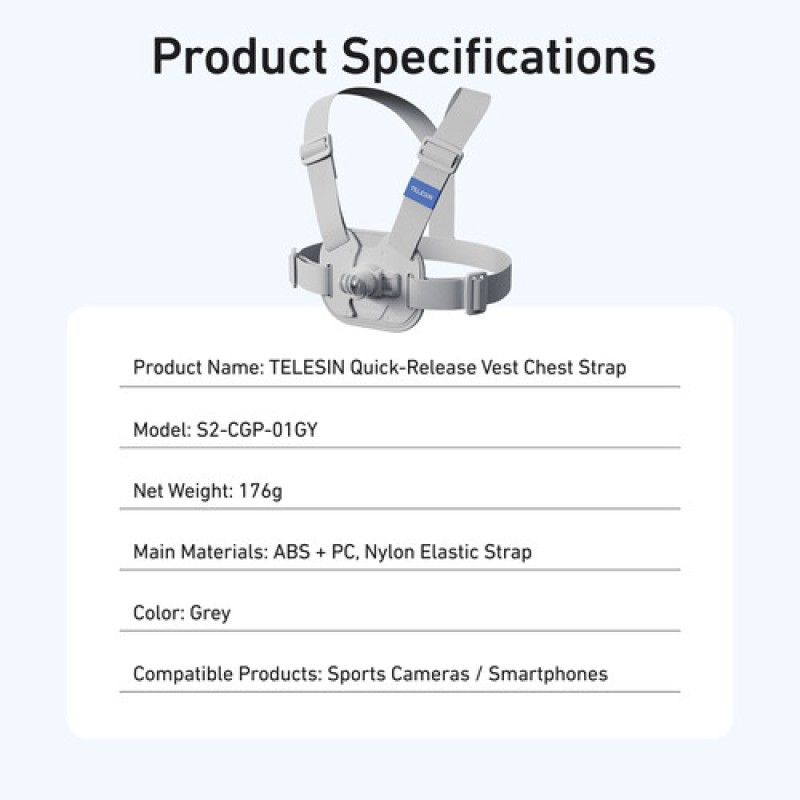 Telesin Vest Chest Strap with Quick Release for Action Cameras, Grey - S2-CGP-01GY