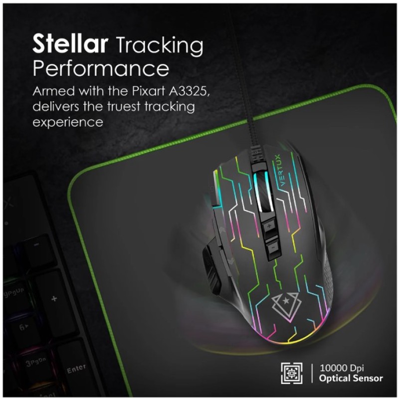 Vertux Superior Quick Performance Wired Gaming Mouse, Black - Kryptonite