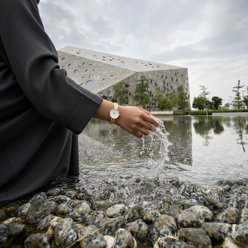 · The prominent floral motif at the dial's centre reflects the beauty of "Mashrabiya" art and the Islamic motifs gracing the façade of the Kuwait Opera House.