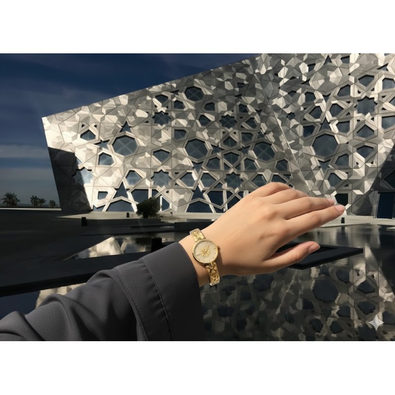 · An all-gold watch reflecting elegance and warmth, inspired by the intricate geometric motifs at the Sheikh Jaber Al-Ahmad Cultural Centre.