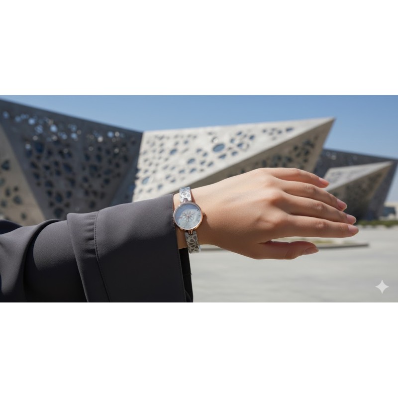 · An elegant watch from the ZYROS collection, inspired by contemporary Islamic art, specifically the motifs of the Sheikh Jaber Al-Ahmad Cultural Centre in Kuwait.