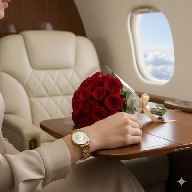 · The dial features delicate artistic engravings that add a touch of luxury, complemented by a polished golden bracelet.